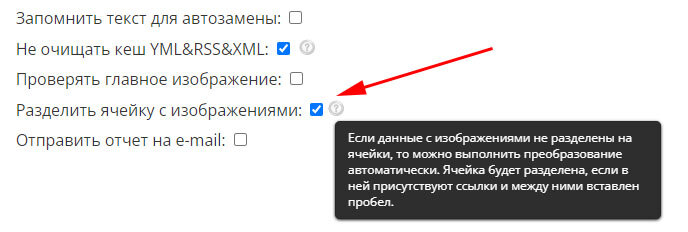 If the data with images is not divided into cells, then you can perform the conversion automatically. The «Image Link (Main)» cell will be split if it contains links and a space is inserted between them. If you use automatic cell division with images, then do not specify cells with additional images 1,2,3,4… It is enough to specify only the Main image.