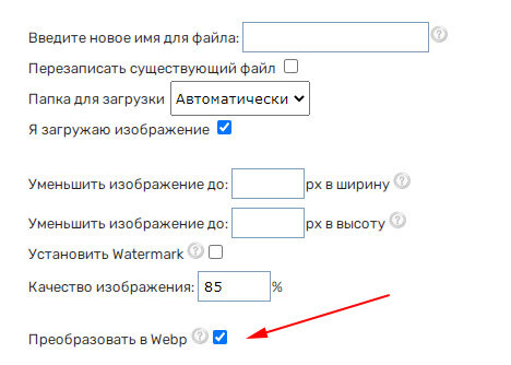 Added conversion of images to WEBP format when loading through the file manager.
