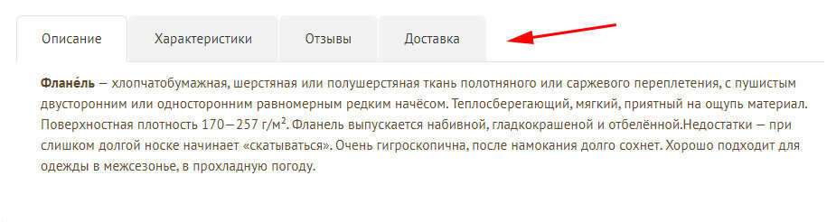 Tabs with descriptions in the product card have been replaced.