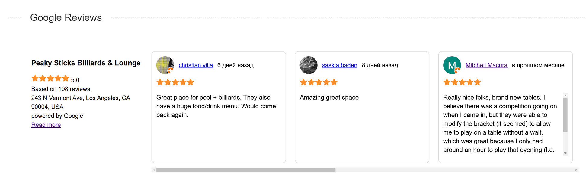 The widget allows you to receive reviews about your company from your Google My Business profile. Google Reviews - Api