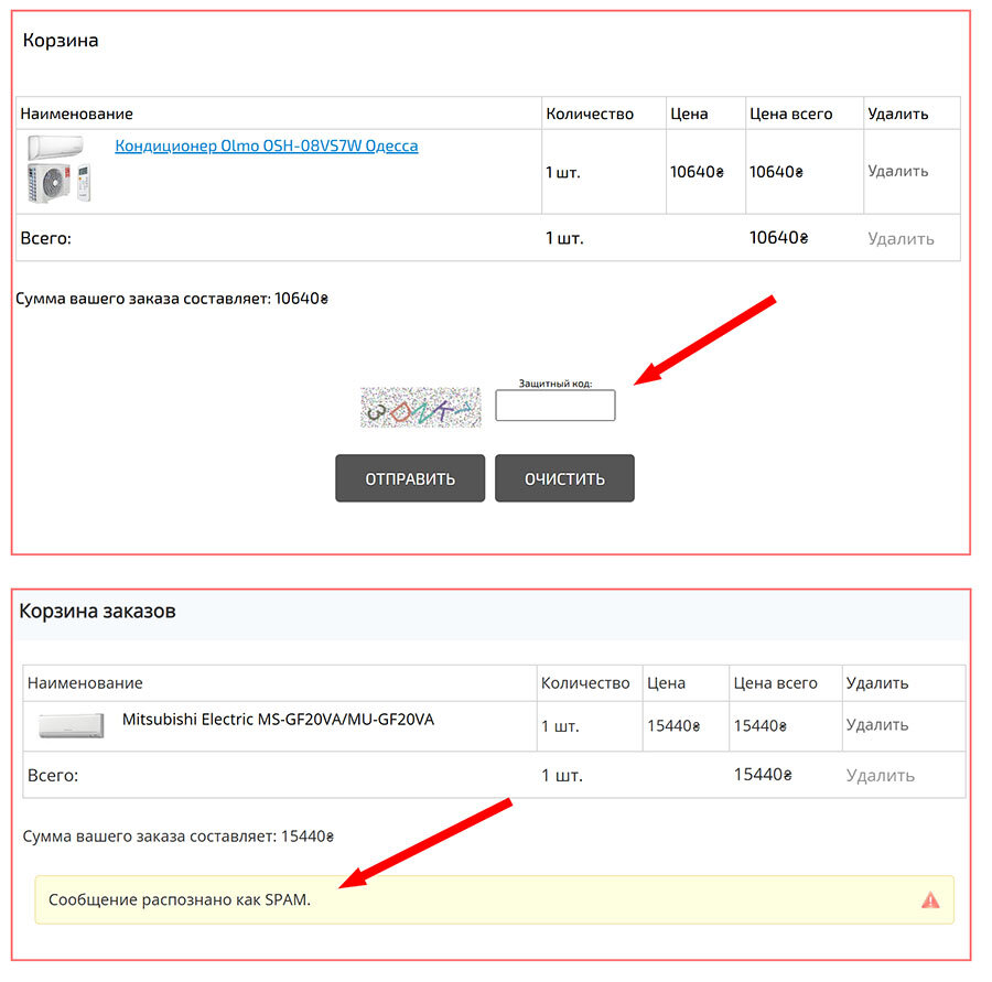 An option has been added to protect the order form through the shopping cart using an image (captcha), and additional text filtering has been implemented in all orders and forms on the site.