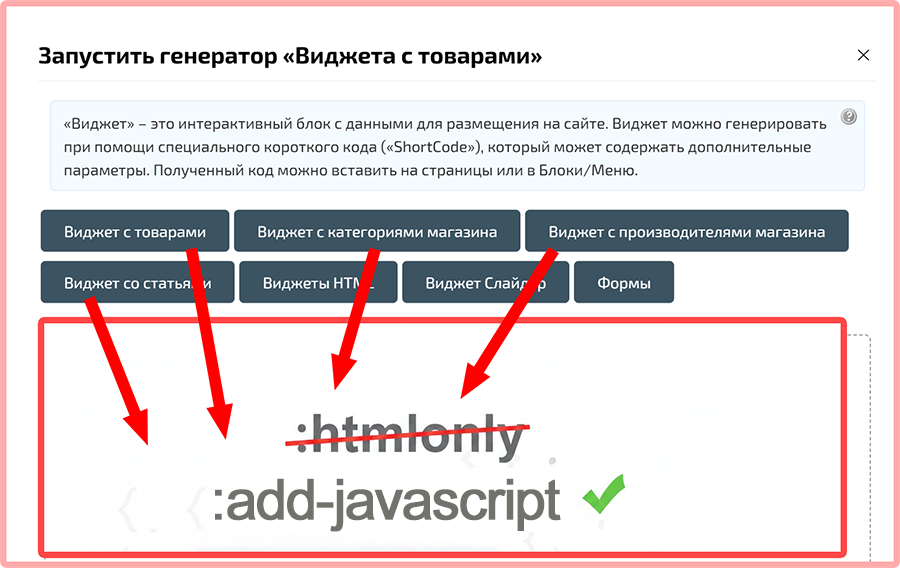 BooStore.pro has introduced an important update for all widgets with products, categories, and manufacturers. Previously, the :htmlonly parameter was used to disable loading scripts and styles. Now it is replaced by the new :add-javascript parameter, but with the opposite logic.