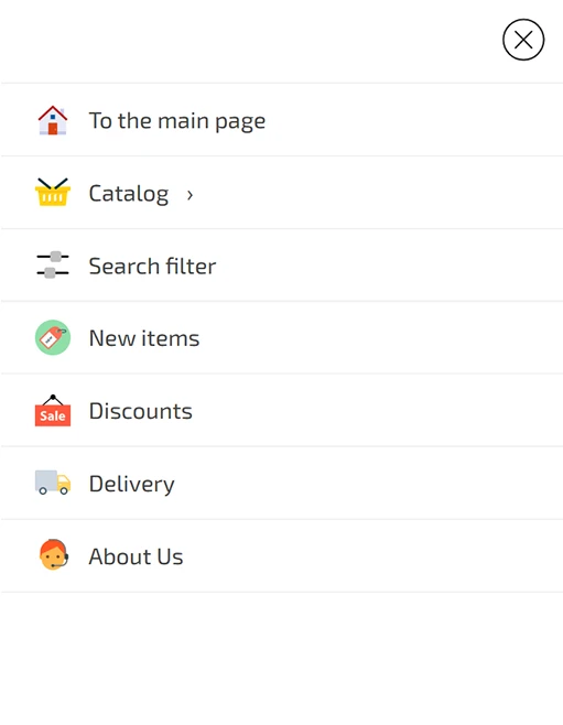 Additionally, ready-made widgets are available for standard tasks. They allow you to quickly add functionality of any complexity: mobile menus, shopping carts, category lists, classic or mega-menus, and other interface elements without having to write code manually.