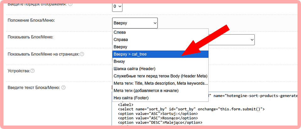 W BooStore.pro dodano nowe położenie istniejącego bloku menu — w górnej części strony, ale pod drzewem kategorii.
