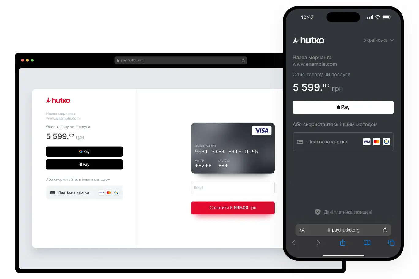 Для подключения платёжной системы Hutko зарегистрируйтесь на https://hutko.org и добавьте Мерчант. Скопируйте полученные значения: "ID мерчанта" и "Ключ оплаты".