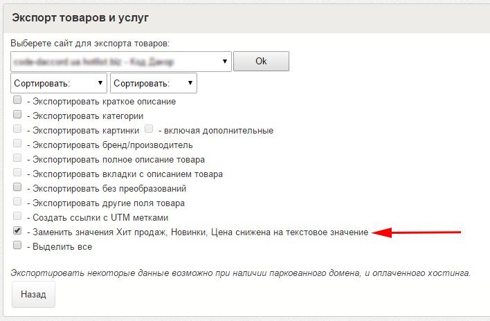 Добавлена автозамена некоторых цифровых значений при выгрузке товара на Текстовые.