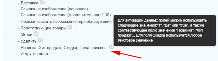Добавлен импорт следующих полей: Новинка, Хит продаж, Скидка, Цена снижена.