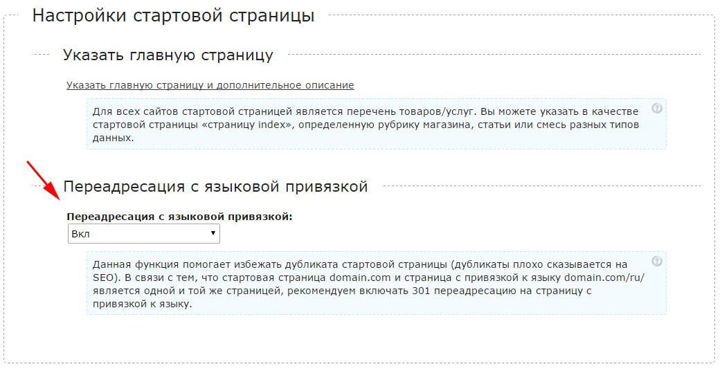 Добавлена переадресация 301 на стартовую страницу с языковой привязкой. Данная функция помогает избежать дубликата стартовой страницы (вредно для SEO).