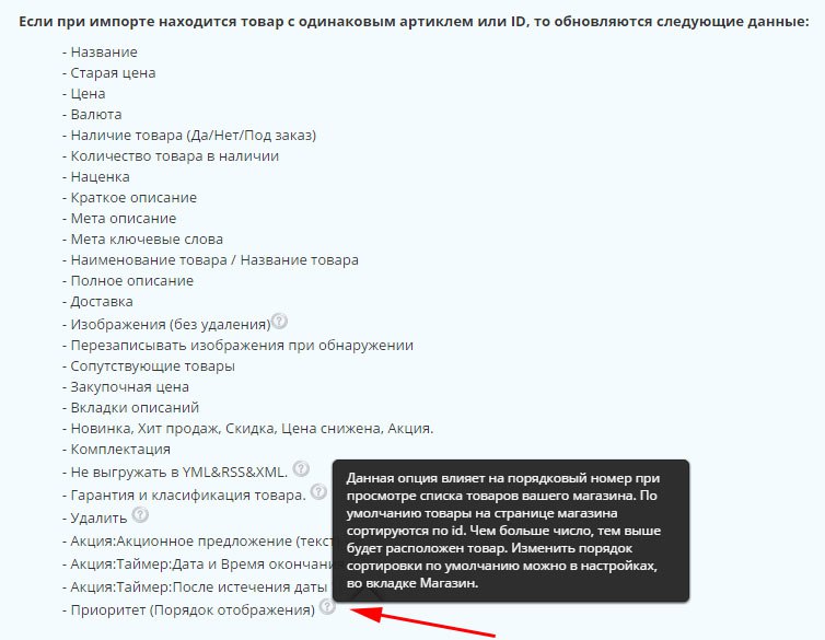 Добавлен импорт следующих полей: Новинка, Хит продаж, Скидка, Цена снижена.