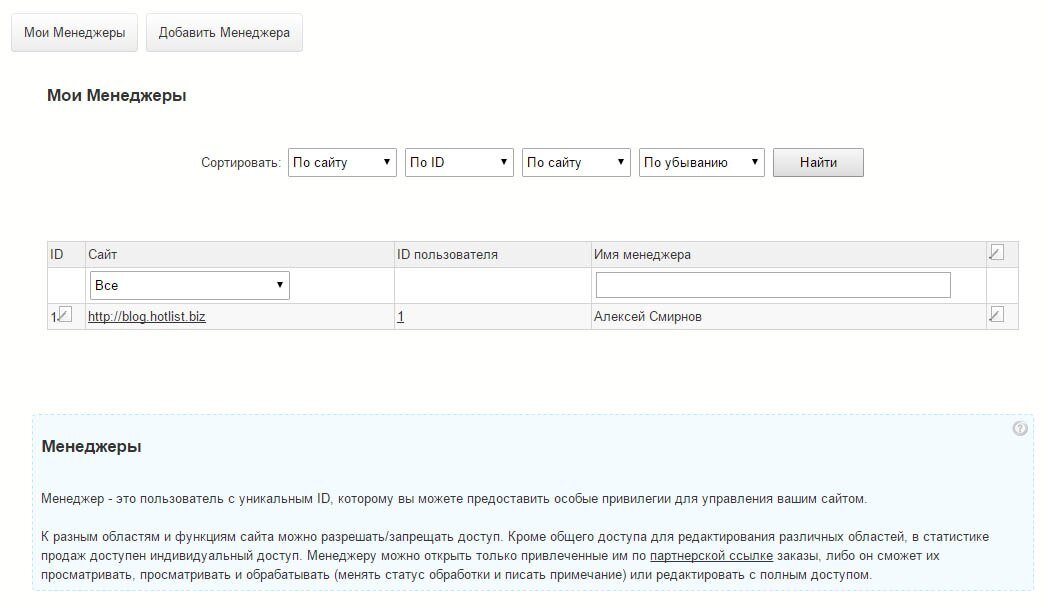Анонсируем добавление функции Менеджеров на нашу платформу. В ближайшем будущем вы сможете создавать менеджеров для ваших сайтов, с различным уровнем доступа.
