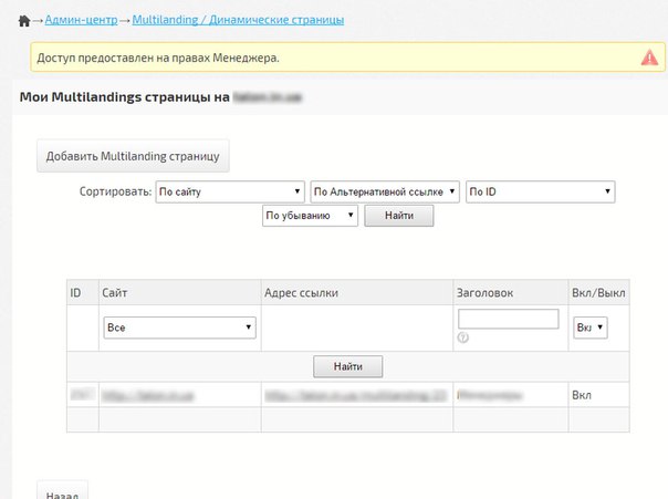 Добавлено Менеджерское управление Динамическими страницами/Multilanding