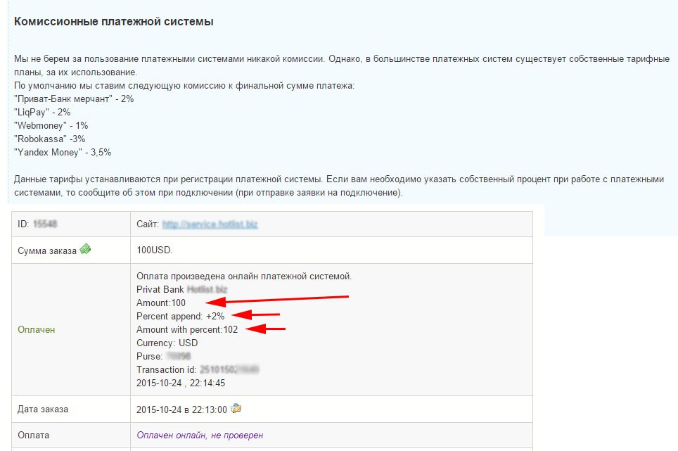 По умолчанию мы установили следующую комиссию к финальной сумме платежа: