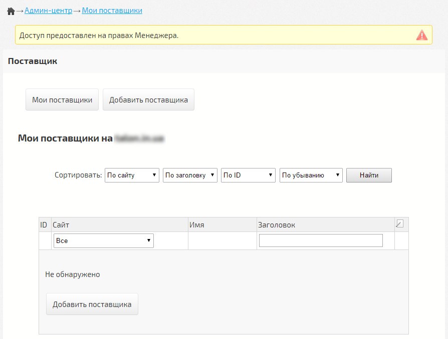 Добавлен Менеджерский доступ для управления Поставщиками.