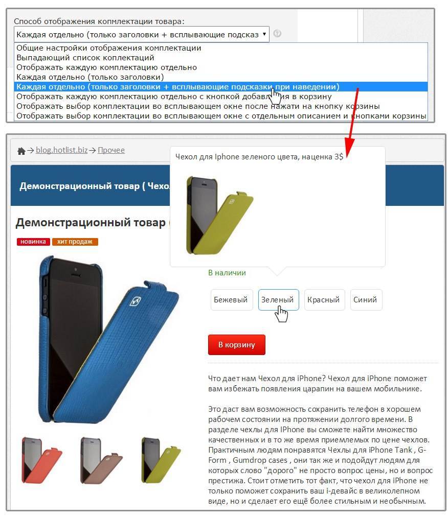 Добавлены новые способы отображения и выбора комплектации товаров. Подробное описание и примеры ниже...