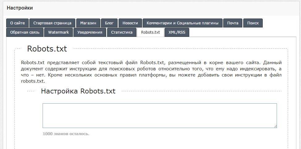 Добавлена настройка Robots.txt