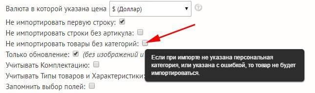 Добавлен параметр при импорте товаров. Теперь если не указана категория, то товар может быть пропущен при импорте.