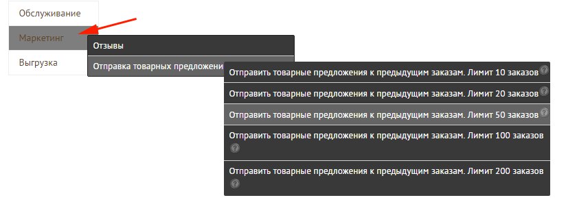 Добавлена массовая рассылка товарных предложений. Прежде чем делать рассылку, добавьте к ранее заказанным товарам сопутствующие товары для e-mail рассылки. После чего выполните рассылку. Все заказчики получат индивидуальные списки с товарными предложениями, в соответствии с ранее заказанными товарами. Если такого списка не создано для заказа, то отправка осуществляться не будет. Таким образом вы сможете дополнить рассылаемые списки к заказам индивидуально и постепенно. Рассылка находится в статистике продаж. Кроме того, вы можете отправлять такие предложения прямо из статистики продаж для каждого заказа индивидуально.