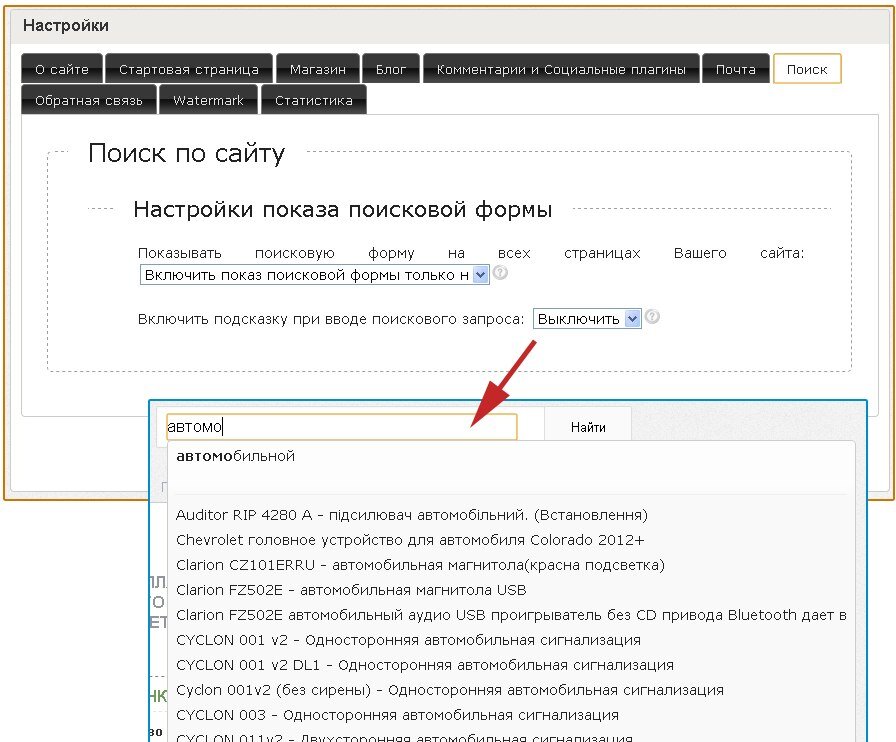 Добавлена настройка подсказок поискового поля в магазине. По умолчанию поисковые подсказки не отображаются.