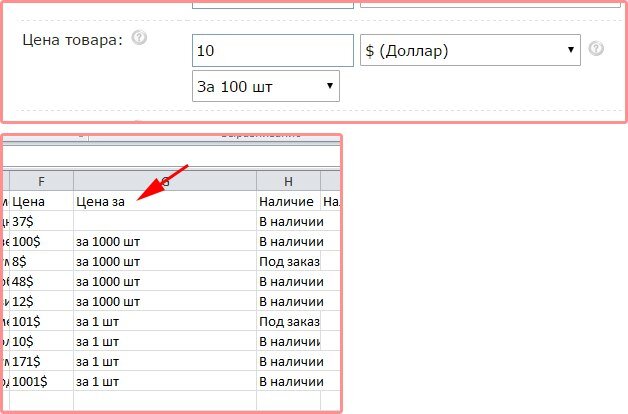 Добавлен импорт и экспорт поля "Цена за" (количество товара).