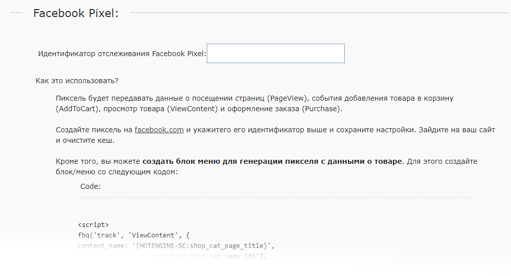 Добавлена возможность использовать Пиксель Facebook - автоматически. Достаточно лишь указать идентификатор пикселя Facebook.
