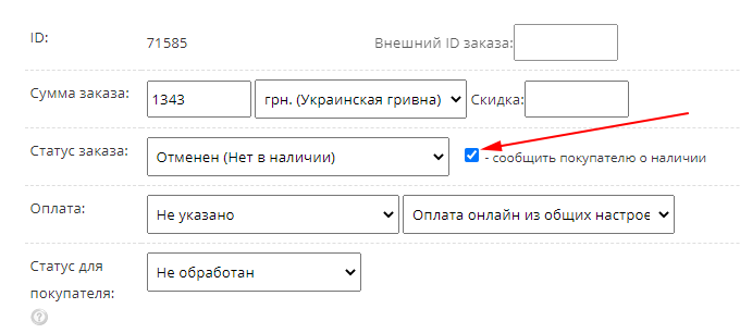 Добавлено информирование клиента о поступлении в наличие товаров, указанных в заказе со статусом "Отменен - нет в наличии".