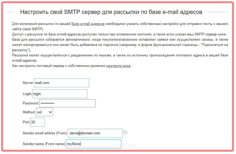 Добавлена возможность указать дополнительный SMTP сервер для рассылки по Базе e-mail адресов. Сбор базы осуществляется автоматически и содержит e-mail адреса всех ваших покупателей, а также может быть добавлен вручную. Доступ к рассылке по базе осуществляется бесплатно, однако необходимо отправить запрос о включении доступа к функции рассылки через форму обратной связи https://boostore.pro/feedback.html