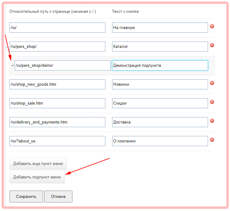 Обновлен редактор Главного меню. Добавлена возможность создавать выпадающие пункты меню.