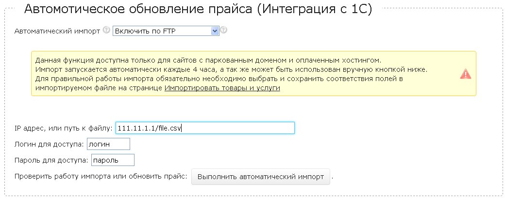 Добавлена возможность автоматического обновления Прайса, из указанного вами источника. Файл может быть размещен на FTP или HTTP сервере. Настроить доступ к файлу вы можете на странице Настройки, во вкладке Магазин. Данную функцию удобно использовать для интеграции сайта с 1С предприятием.