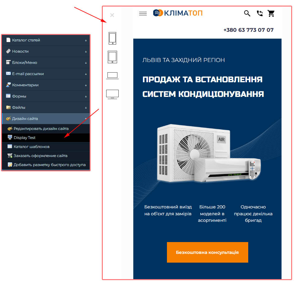 Добавлена функция тестирования сайта на различных устройствах.