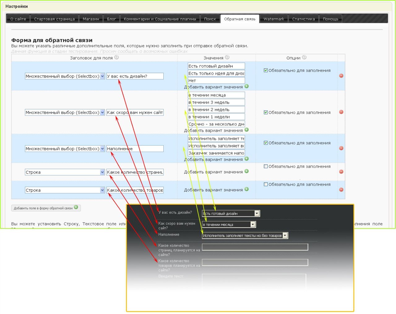 Добавлена возможность конструировать собственную форму обратной связи.