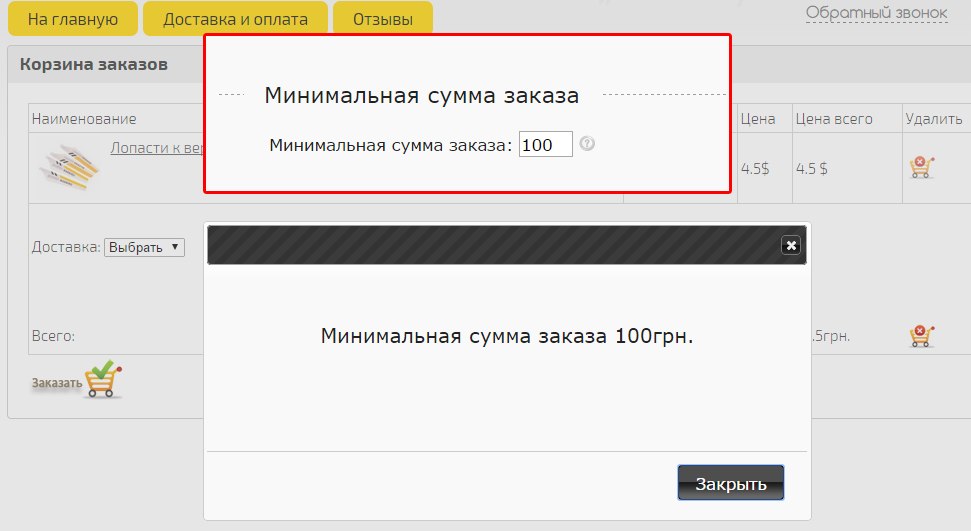 Добавлен параметр, МИНИМАЛЬНАЯ СУММА ЗАКАЗА.