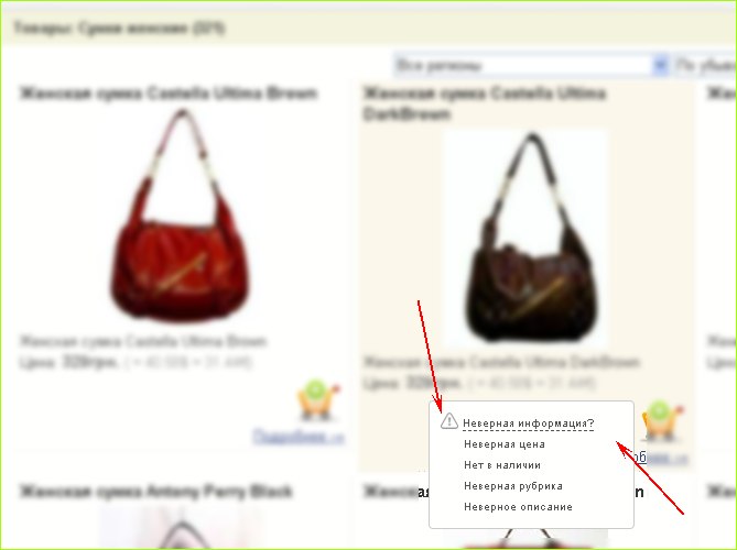 Добавлена возможность сообщать об ошибке в описании товара, его отсутствии или не верной категории. Данная функция активна