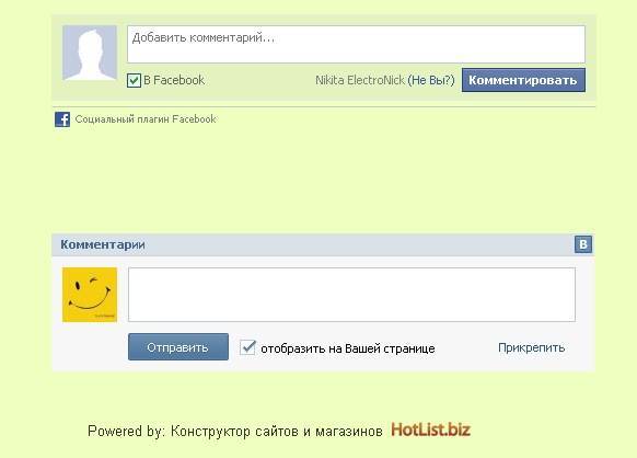 Комментарии Facebook и Вконтатке, на Ваш сайт