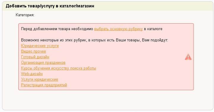 Добавлен показ рубрик, в которых есть Ваши товары. Данная опция ускорит добавление товаров.