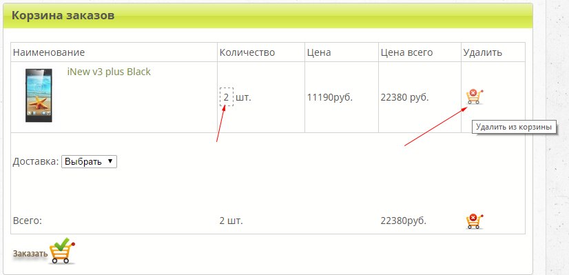 В связи с введением функции изменения количества товаров в корзине, кнопка УДАЛИТЬ ИЗ КОРЗИНЫ, теперь удаляет не по одному товару, а всю строку сразу.