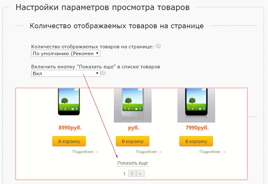 Добавлена настройка кнопки ПОКАЗАТЬ ЕЩЕ в списке товаров.