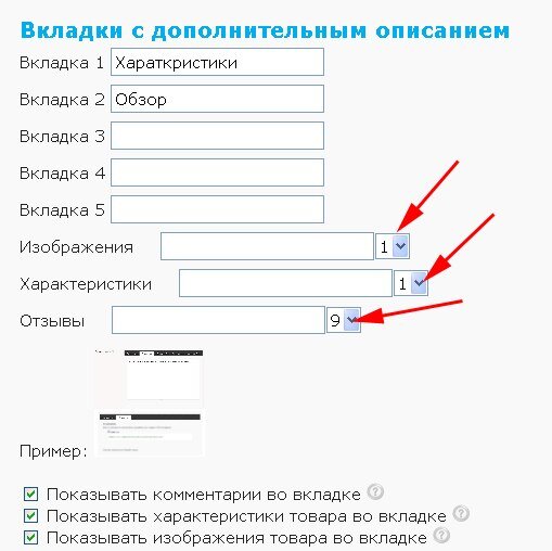 Добавлена возможность изменить порядок отображения дополнительных вкладок в описании товаров.