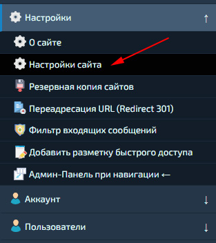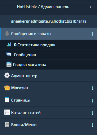 Панель управления («Админ-Панель») находится слева (или вверху в «Мобильной версии»).