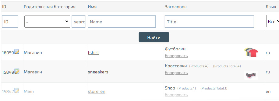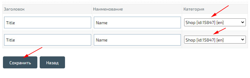 Для удобной навигации по сайту, сначала создайте основную рубрику «Магазин» (Store), в «Главной» категории на нужном вам языке. Вы сможете указать все необходимые СЕО заголовки (данные для поискового продвижения), а также автоматически добавляемые данные. При первичной установке Шаблона, автоматически создаются родительские категории «Магазин» на всех выбранных Языках. Если текст кнопки не указан, то он будет заменен «Заголовком» категории.