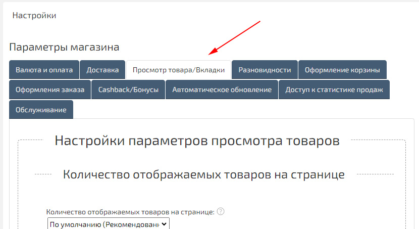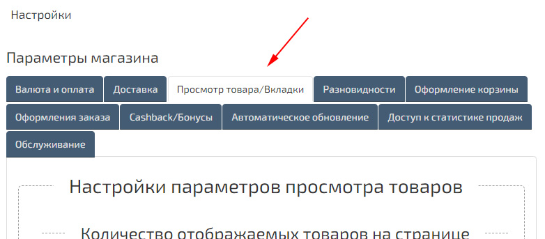 Вкладки и описание товаров.