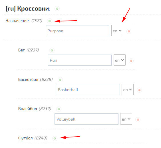 Если необходимо создать поисковый фильтр на другом языке, то нет необходимости создавать еще один «Тип товара». Для перевода «Типов товаров и Характеристик», доступна функция «Перевод значений характеристик». Функция находится на странице «Типы товаров и значения характеристик», «Перевод значений характеристик».