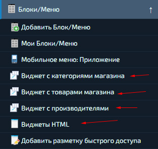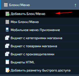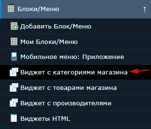Создание «Блока/Меню» с раскрывающимися пунктами категорий магазина