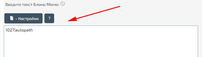 В тексте меню можно использовать параметр «autopath», который укажет фильтру, что поиск необходимо осуществлять внутри открытой «Категории», а также «ID типа товара», если вам необходимо сразу разместить раскрытий для поиска тип товара. Если параметры не указаны, то посетитель сможет выбрать необходимый «тип товара» самостоятельно. В нашем примере указываем «Текст блока/меню» - «1027|autopath», где «1027» - ID типа товара «Кроссовки», а «autopath» - параметр осуществления поиска на той же страницы категории.