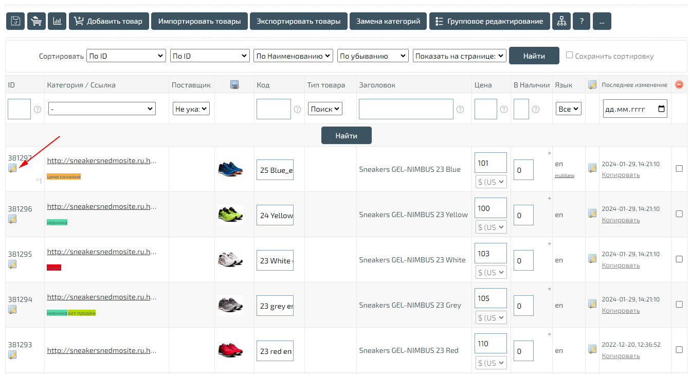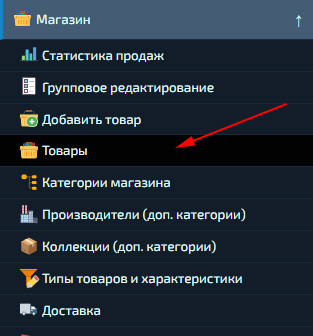 Управлять всеми товарами вы можете в разделе «Магазин» - «Товары».