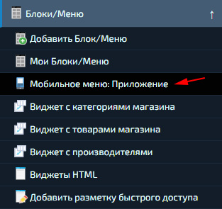 Виджет Мобильное меню: Приложение.