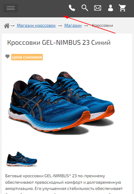 Вы можете использовать редактор «Мобильной версии» для создания блока с необходимыми вам иконками и раскрывающимися пунктами меню.