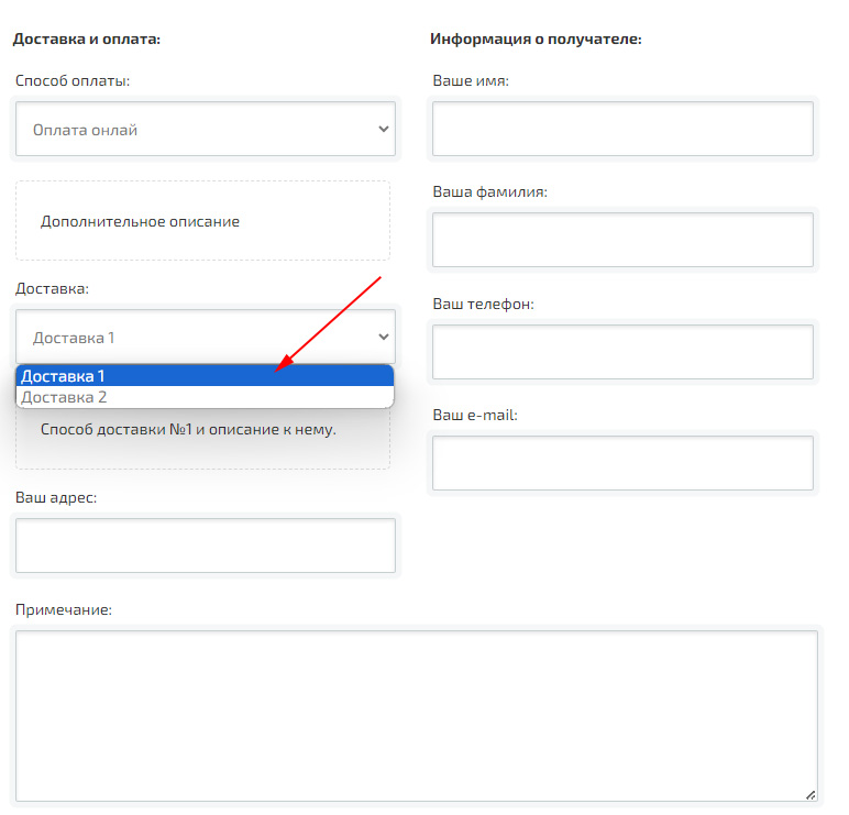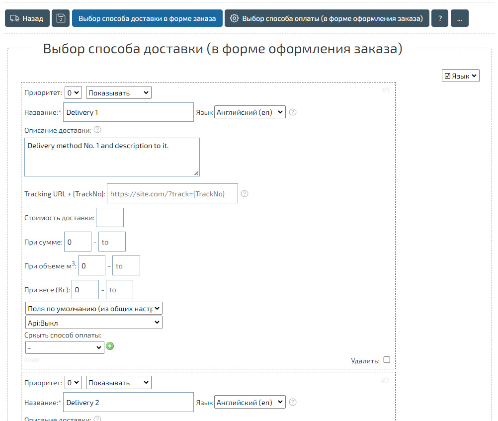 В результате покупатель сможет выбрать один и предложенных вариантов доставки, а также, получить описание условий после изменения способа доставки. Способы доставки можно добавить на разных языках.