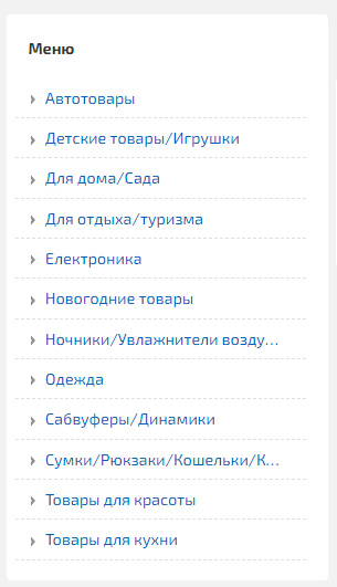 Для создания списка категорий и подкатегорий добавьте «Блока/Меню», разместите его, например, «Слева» и воспользуйтесь «Виджетом с категориями магазина». Укажите параметр «:vertical - вертикальное меню» и вставьте полученный код в текст «Блока/Меню». Например, «[MENU:shop_categories:start-0:vertical:dataattr:googlenav:htmlonly]». Где start-0 – замените на ID вашей основной рубрики «Магазин», например, «start-123».
