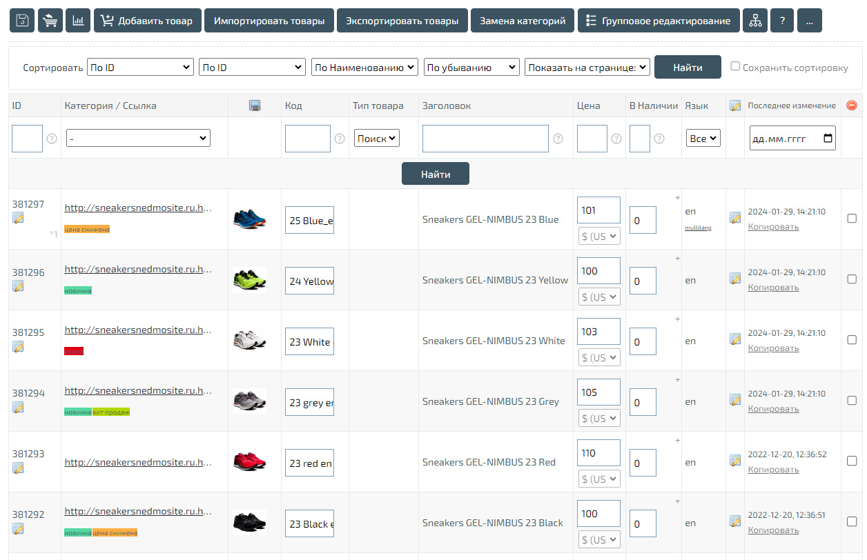 Товары. Добавление и управление.