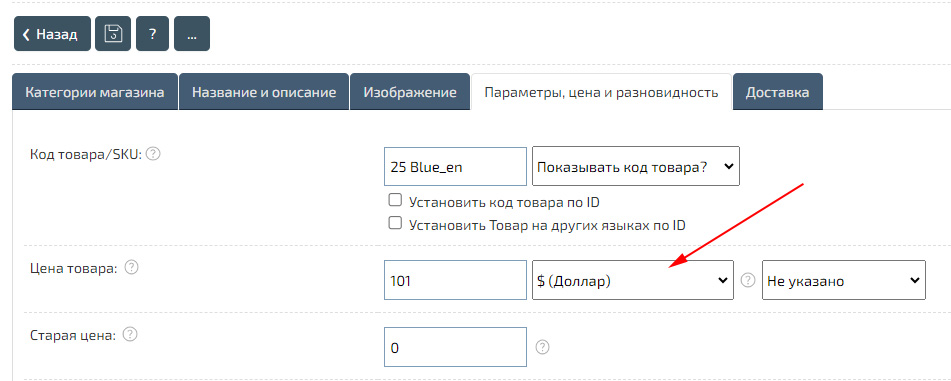 При этом не зависимо от указанной валюты в стоимости товара – будет отображаться единая валюта для всего сайта.